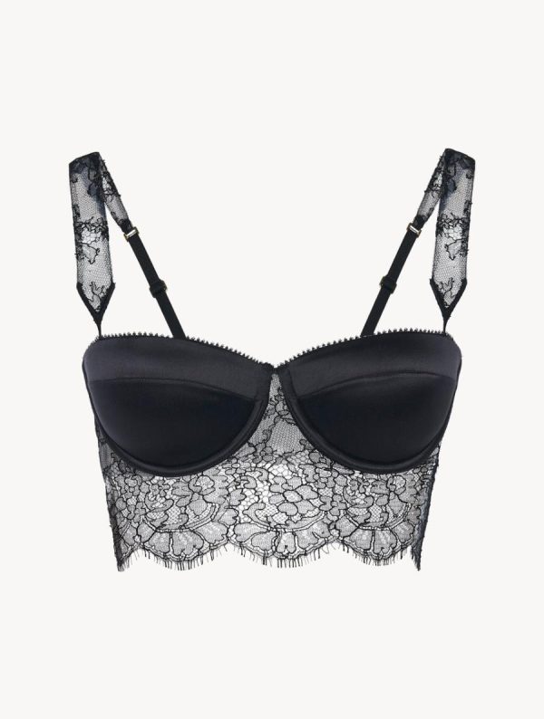 Experience the perfect blend of sophisticated style and exceptional comfort with the Dreamland Padded Bralette in Black. This stunning underwire bra features exquisite wide lace straps and premium scallop-edged Leaver’s Lace with delicate floral embroidery that creates beautiful peekaboo details. Designed for all-day wear with superior support and luxurious feel, it’s the perfect foundation piece for your favorite outfits. Complete your look by pairing with our matching Brazilian Briefs or Lace Thong.