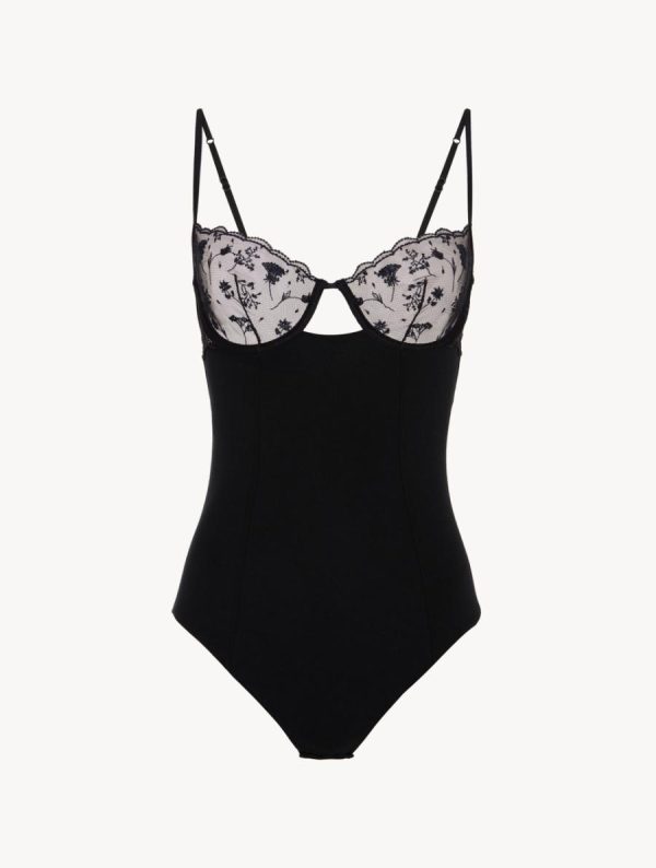 - Midnight Botanica Bodysuit in Onyx with embroidered tulle