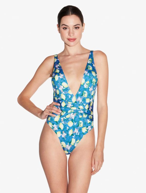 Experience the essence of Italian summer luxury with our Amalfi Twist Swimsuit in a stunning blue hue featuring a vibrant lemon and floral print. Designed with a contemporary silhouette that features a bold V-neck and open back, this swimsuit is accentuated with elegant twist detailing that flatters your figure. Perfect for creating stylish vacation looks when paired with our coordinating Short or Long Dress.