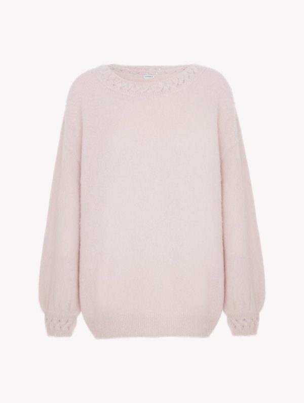 The true embodiment of luxurious comfort, Fluffy Cocoon is a timeless collection of irresistibly soft pieces designed for day-to-day layering and elevated downtime. This beautifully tactile Alpaca blend Sweater is crafted in a pretty shade of Powder Pink. Cut to a relaxed silhouette, it’s exquisitely finished with braided detailing along the neckline and cuffs. Complete the look with the matching trousers or style with your favourite wardrobe staples.