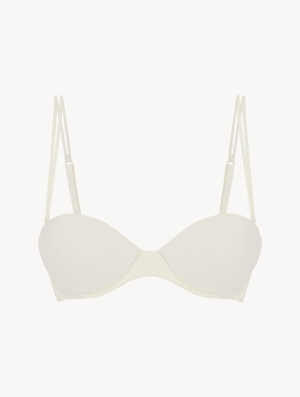 Bandeau bra with preformed cups made of a special pin point stretch fabric.
