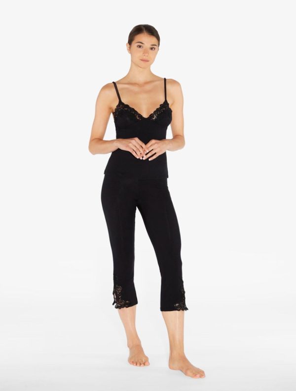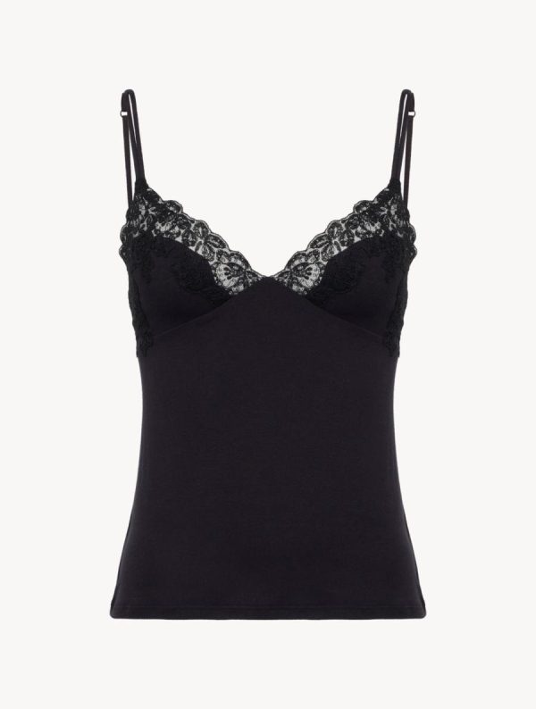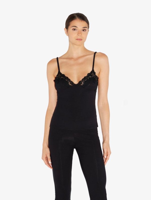 Women Cashmere Blend Ribbed Camisole In Onyx With Frastaglio | La Perla Camisoles