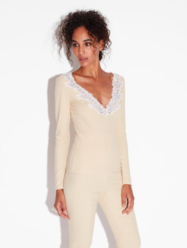 Elevate your downtime with Angel Kiss, a timeless collection of irresistibly tactile staples made for effortless dressing, day and night. Crafted from a soft-touch cashmere blend for luxurious, unparalleled comfort, the ribbed Long-sleeved Top has a wear-forever silhouette and is beautifully finished with exquisite Frastaglio embroidery. Style with the matching Sleep Shorts or Trousers to complete the look.