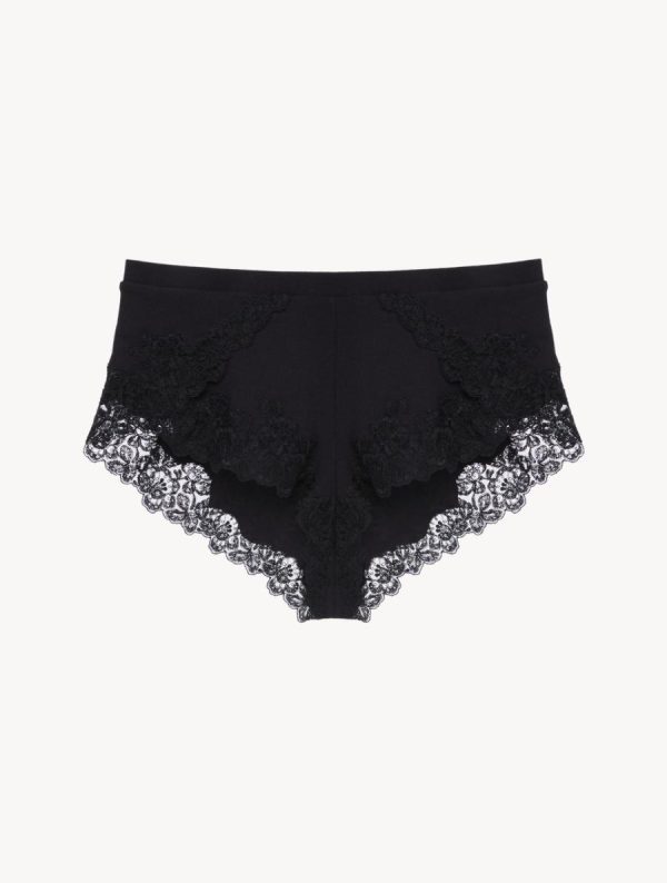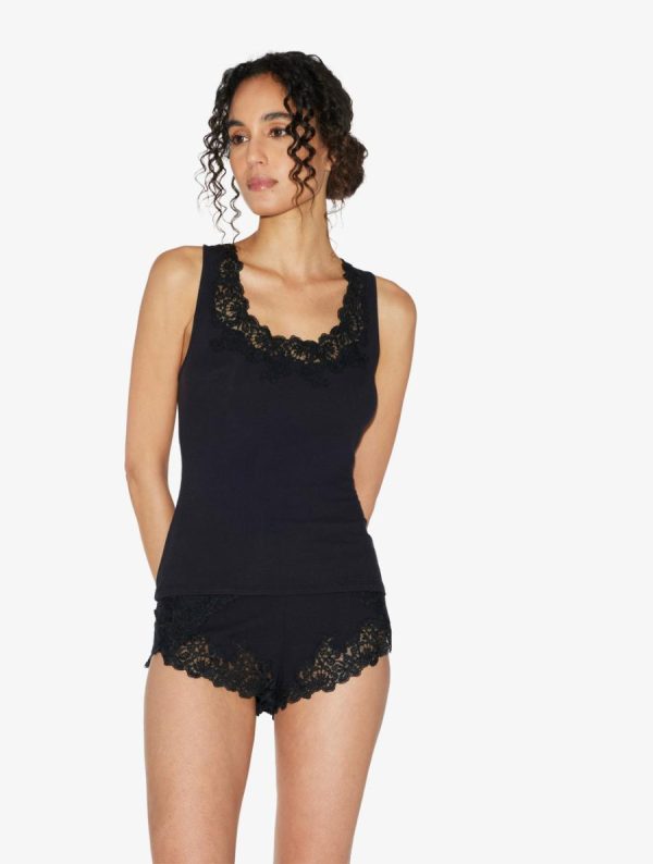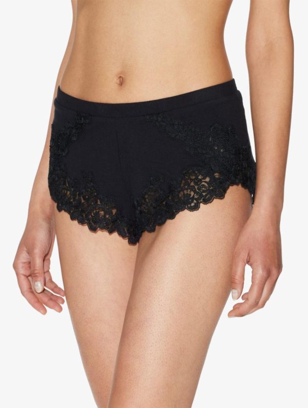 Women Cashmere Blend Ribbed Sleep Shorts In Onyx With Frastaglio | La Perla Pajamas