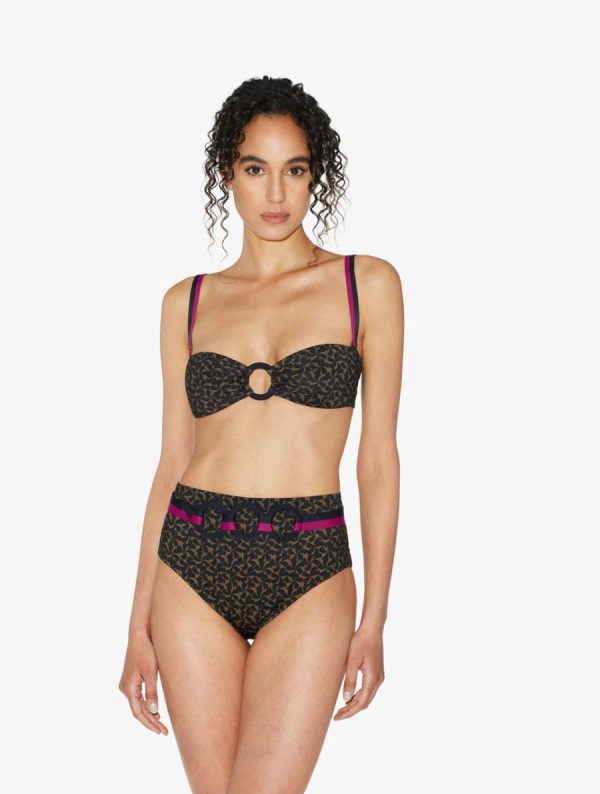 Blending a flawless silhouette with a flattering high-waisted cut, the Summer Winds bikini brief is conjured in a sophisticated Dark Green and Black print. A contemporary take on a timeless classic, it comes with a detachable, ring-detail belt for multiple ways to wear. Style with the matching bralette or bandeau bikini top to perfectly capture irresistible summer elegance.