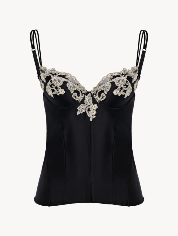 Women Luxury Black Corset In Silk Satin With Frastaglio | La Perla Bodysuits & Bustiers