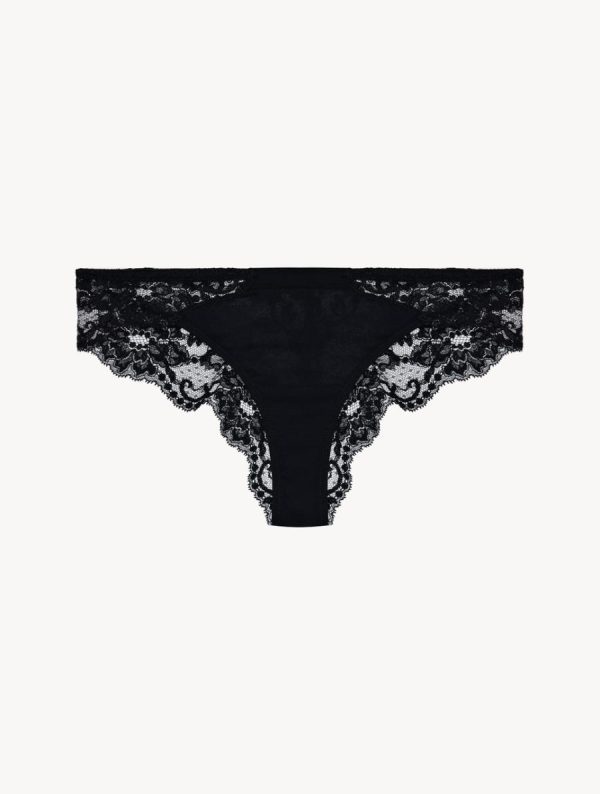 Brazilian briefs in floral stretch Leavers lace and stretch cotton jersey. A versatile, comfortable and elegant piece of underwear.