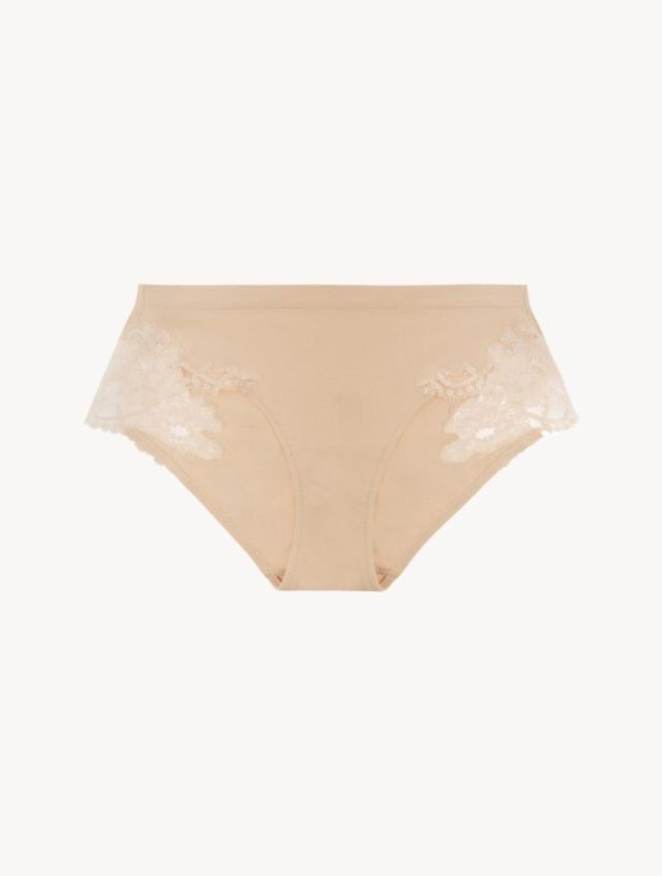 Mid-rise briefs in stretch cotton jersey that is delicate and thick to the touch. The result is a versatile, comfortable and elegant piece of underwear. The piece is embellished with floral stretch Leavers lace inserts.