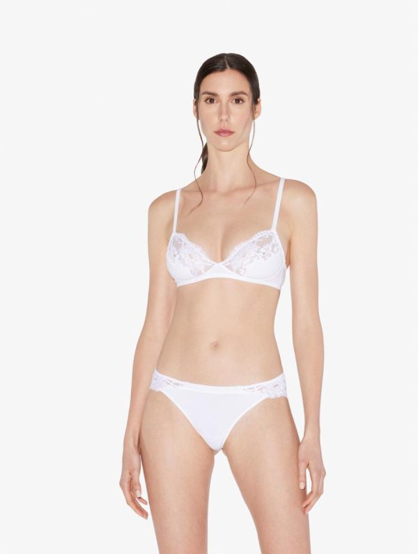 Bra in stretch cotton jersey that is delicate and thick to the touch. The result is an undergarment that is versatile, comfortable and elegant. The décolleté is embellished with floral stretch Leavers lace inserts.