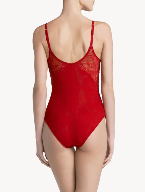 Women Luxury Lycra Bodysuit In Beige With Embroidered Tulle | La Perla Bodysuits & Bustiers