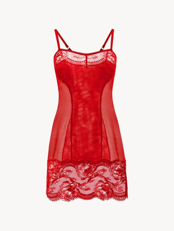 Intricate Leavers lace details this stretch tulle slip, complete with scalloped edging and sheer panel detail.