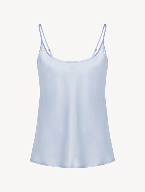 An elegant silk pajama top with thin, adjustable shoulder straps and a cool, comfortable feel. Its body-skimming shape and lustrous finish have a simple, sophisticated effect. A scooped neckline flashes the décolletage for a sensual finish. Complete the set with matching silk shorts.