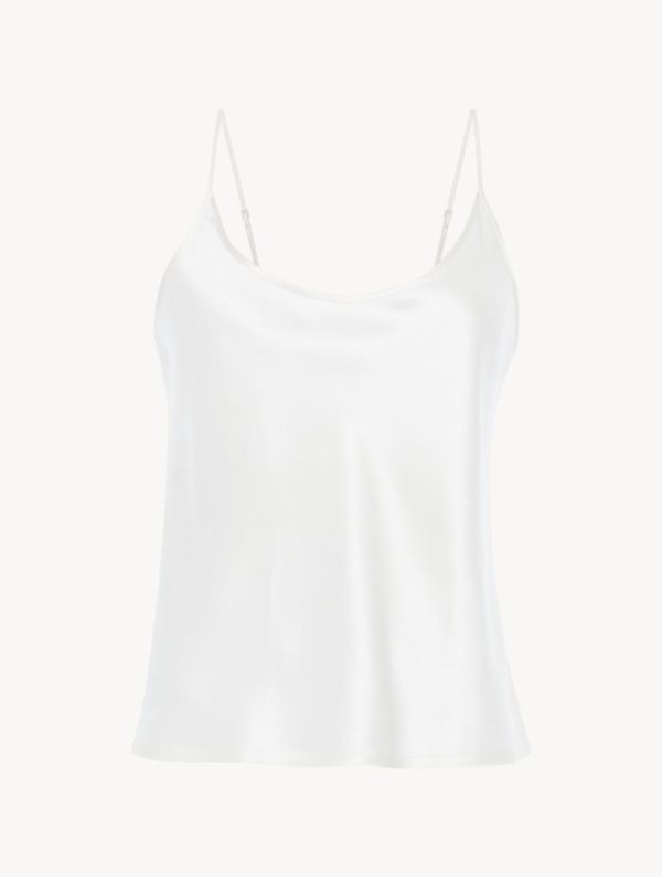 An elegant silk camisole with thin, adjustable shoulder straps and a cool, comfortable feel. Its body-skimming shape and lustrous finish have a simple, sophisticated effect. A scooped neckline flashes the décolletage for a sensual finish. Complete the set with matching silk shorts.