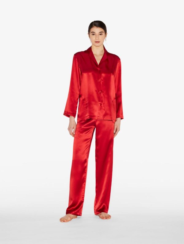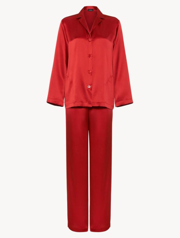 Women Luxury Silk Pajama Set In Garnet Red | La Perla Pajamas