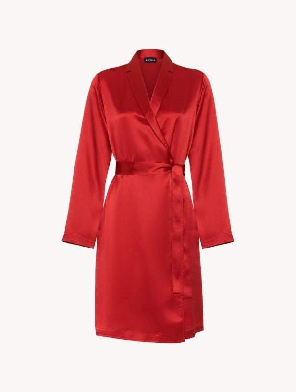 Crafted from pure silk satin, this essential nightwear collection is endlessly appealing. These supremely soft pieces are a pleasure to sleep in, while doubling as luxurious separates during the day. This short robe is cut with a relaxed fit and a classic crossover silhouette, defined with a notched lapel. It is secured with a sash belt at the waist.