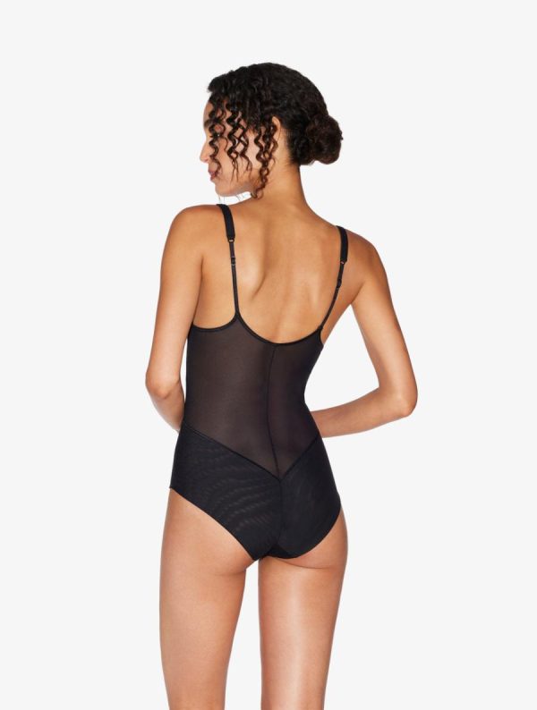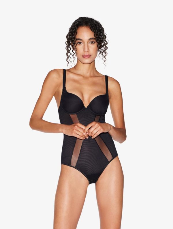 Women Luxury Lycra Bodysuit In Beige With Embroidered Tulle | La Perla Bodysuits & Bustiers