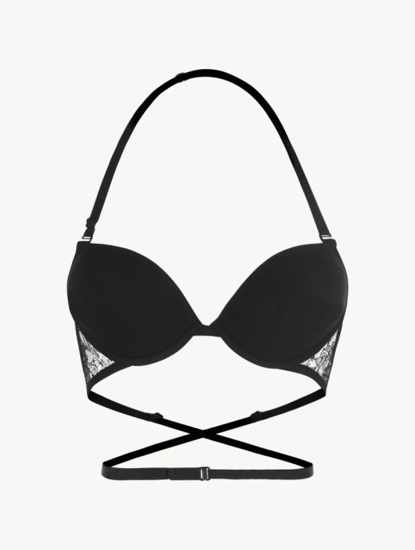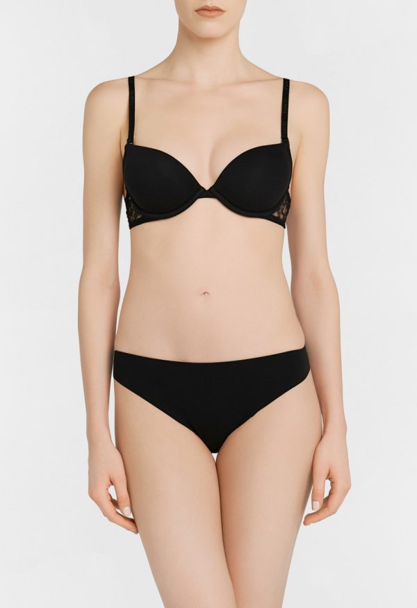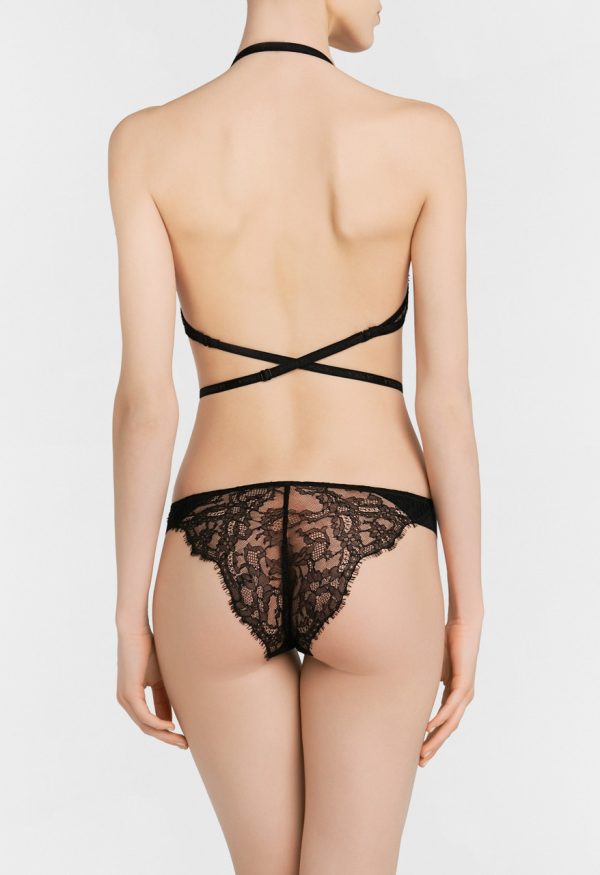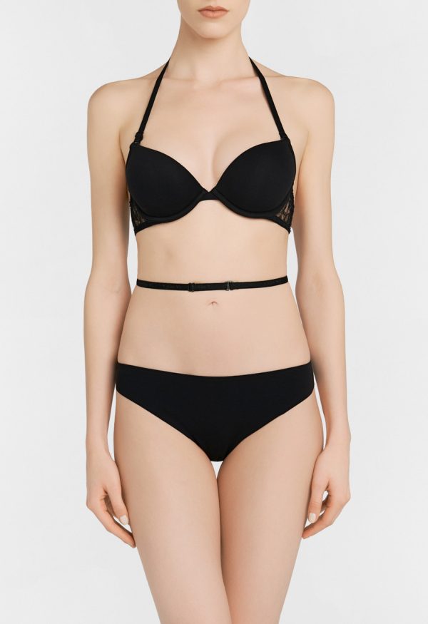 A perfect range of underwear to enhance the figure under any garment, with an added touch of romance. American bra made from LYCRA® Beauty, a high-quality, incredibly comfortable fabric with a compact texture, characterised by an elegant width of stretch Chantilly lace. This multifunctional bra is extremely versatile, letting you play with different necklines and transparencies. Reinvent your look with underwear that can be personalised for any occasion, thanks to moveable straps that can be worn six different ways. Performed cups and internal pockets for additional padding.