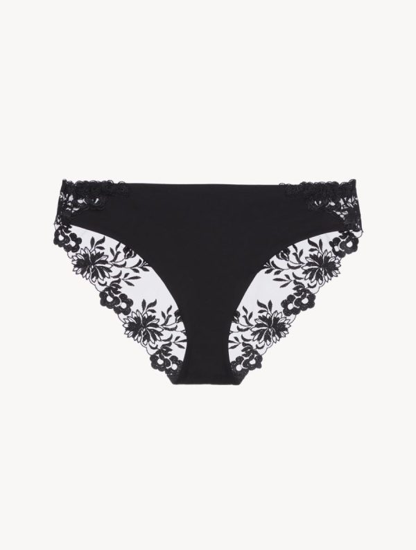 The Zephyr collection highlights La Perla’s heritage of fine craftsmanship, translating this with a youthful twist. Rich floral embroidery and sheer panels add precious accents to these contemporary Lycra pieces. These medium briefs are an everyday staple made romantic with a tulle back and a trail of delicate flowers that dance across the skin. They have a mid-rise waist and offer moderate coverage.