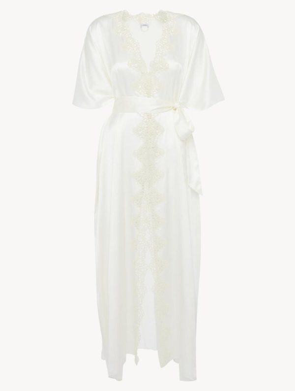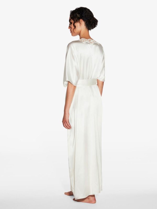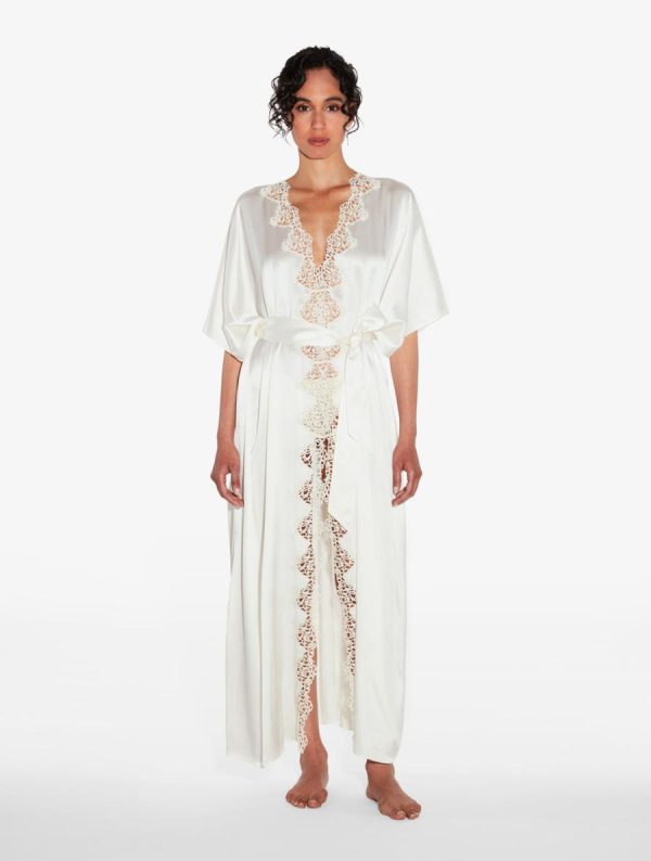 Cut with a relaxed, elegant silhouette for the perfect blend of comfort and confident elegance, our Petit Macramé silk robe is designed to be treasured. Meticulously crafted from fluid silk satin, it’s beautifully hand finished using the art of frastaglio appliqué.