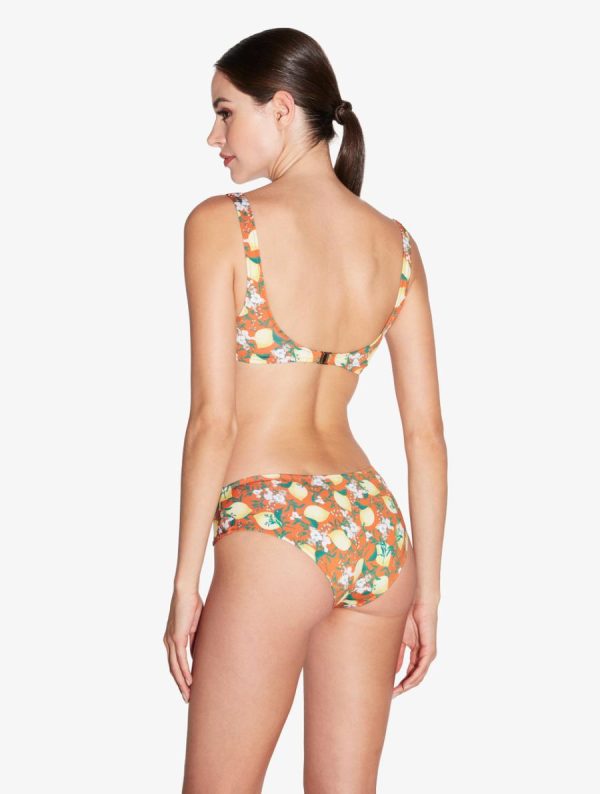 Capturing the irresistible mood of an Italian summer, the Amalfi Twist Bikini Top in orange features a fresh and vibrant print of lemons and flowers. Cut to a timeless and flattering silhouette, it has a daring scooped neck and removable padding. Mix and match with the co-ordinating Briefs for flawless holiday style.