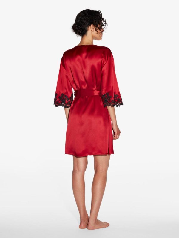 The most luxurious piece in the La Perla Maison collection features embroidered motifs on a tulle background in the same colour as the silk, hand finished with a double-frastaglio technique. Silk satin short robe embellished with embroidery on tulle backing in the same colour silk. Finished with hand-embroidered double frastaglio embroidery. A modern yet elegant creation that represents the newest and most exquisite style in the La Perla Maison collection.
