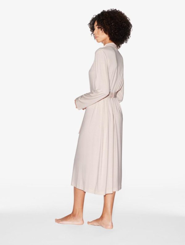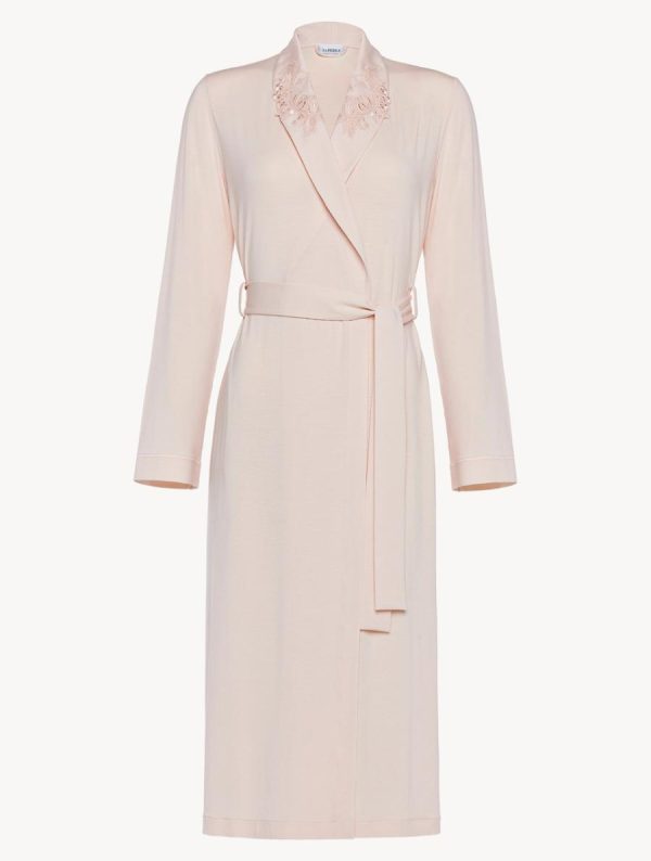 Comprised of elegant lounge and nightwear separates, this collection offers a unique balance of effortless style and irresistible comfort. Cut from soft, fluid modal jersey, this short robe features the classic Maison motif, delicately embroidered on a tulle base and finished by hand. Designed with a wrap style, it features a matching waist tie.