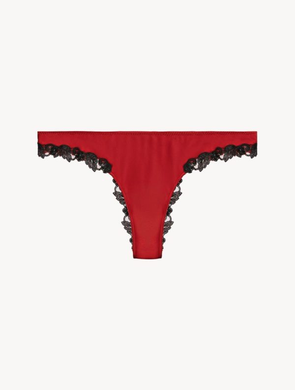 Women Silk Brazilian Panties In Red With Black Frastaglio | La Perla Brazilian