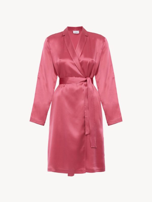 Crafted from pure silk satin, this essential nightwear collection is endlessly appealing. These supremely soft pieces are a pleasure to sleep in, while doubling as luxurious separates during the day. This short robe is cut with a relaxed fit and a classic crossover silhouette, defined with a notched lapel. It is secured with a sash belt at the waist.