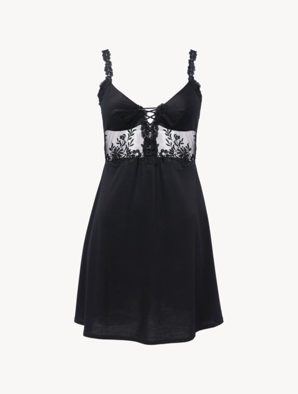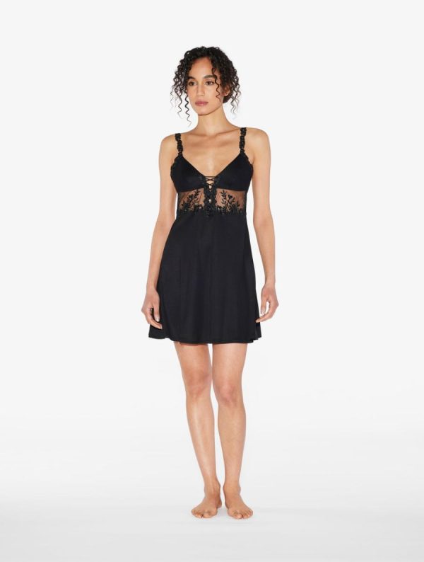 - Slip Dress in modal stretch with sheer embroidered tulle