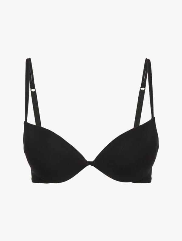 Push-up bra made of a special pin point stretch fabric. The garment wearability is ensured by preformed and padded cups. Stylish details: double elastic and adjustable shoulder strapclosed by a hook at the back.