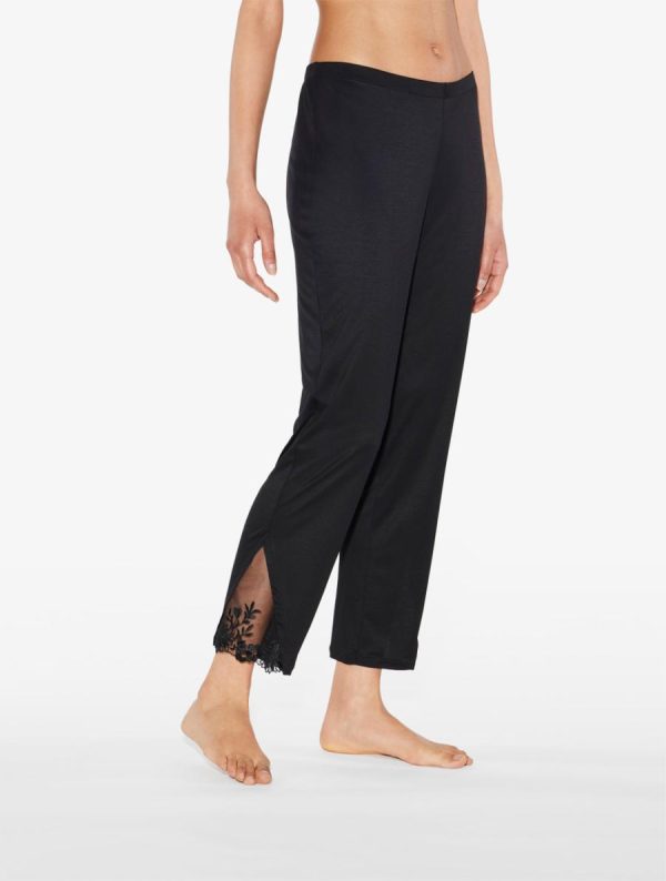 - Cropped trousers in modal stretch with sheer embroidered tulle