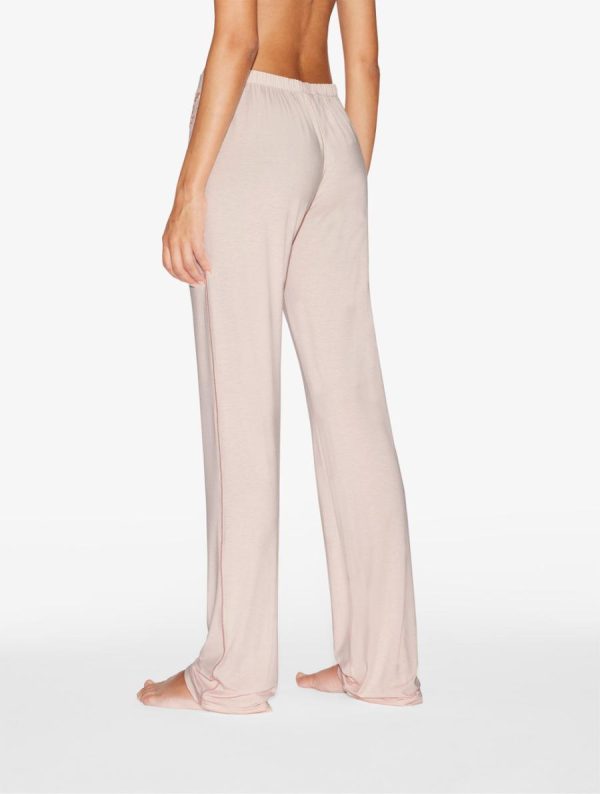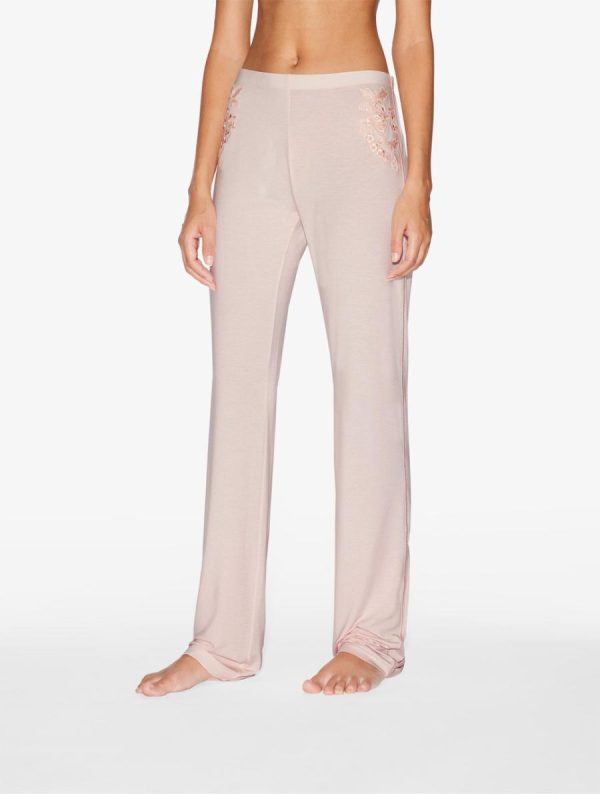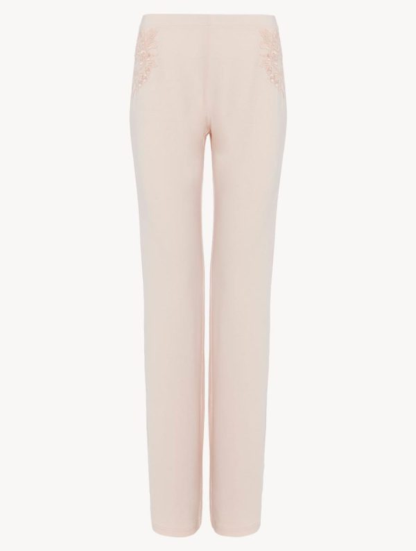 - Long trousers in pink modal jersey with embroidered tulle
