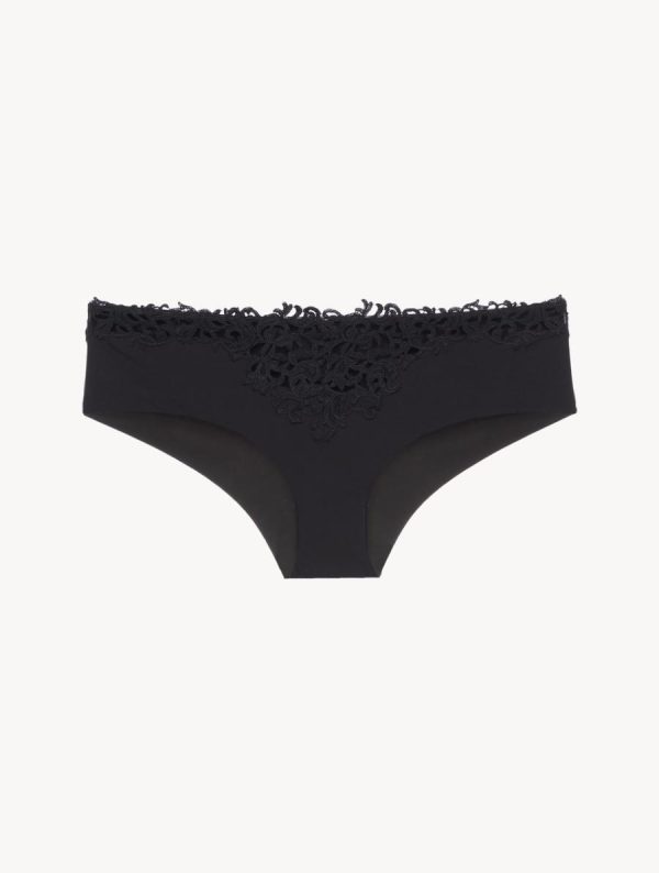 Experience luxurious comfort with these ultra-light Lycra® hipster briefs featuring exquisite macramé frastaglio appliqué for an elegant touch.
