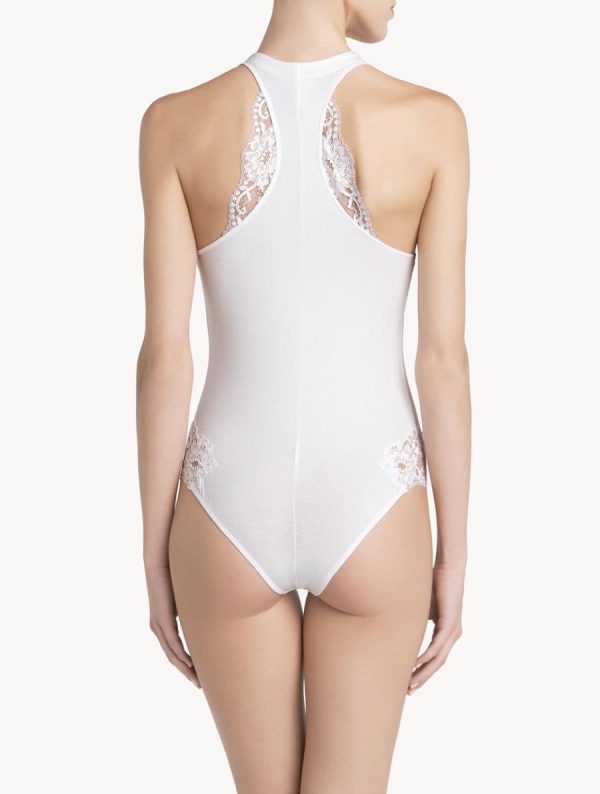 Women’s Luxury White Cotton Bodysuit | La Perla Collection