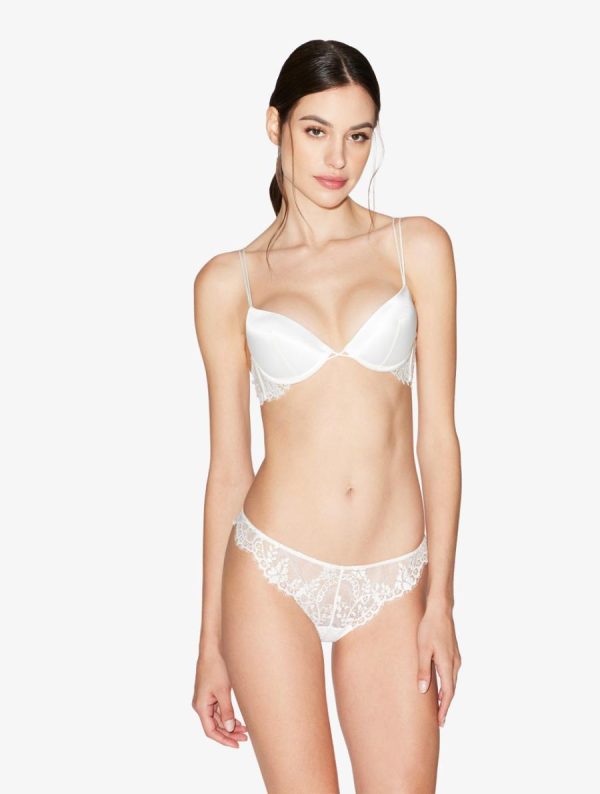 Women’s Off-White Padded Push-Up Bra with Leavers Lace Trim | La Perla