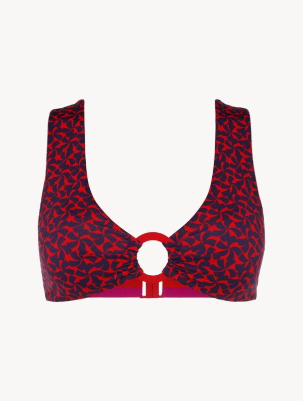 Experience the perfect fusion of style and comfort with our Summer Winds bralette bikini top, featuring an eye-catching Red and Blue print. This contemporary wireless design combines effortless elegance with practical comfort, enhanced by distinctive ring detailing and removable padding for customizable support. Complete your summer look by pairing with our matching low-cut or high-waisted briefs to create a stunning beach-ready ensemble.